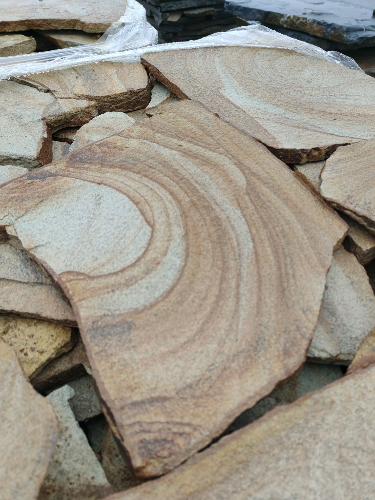 Песчаник жёлтый с разводами для мощения дорожек 30-35 мм